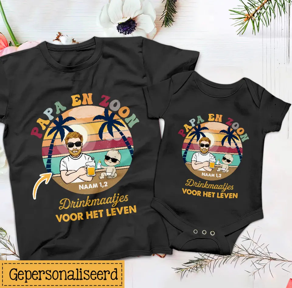 Gepersonaliseerd t shirt voor Nieuwe papa | Gepersonaliseerd cadeau voor Nieuwe vader | Papa en zoon/dochter Drinkmaatjes voor het leven