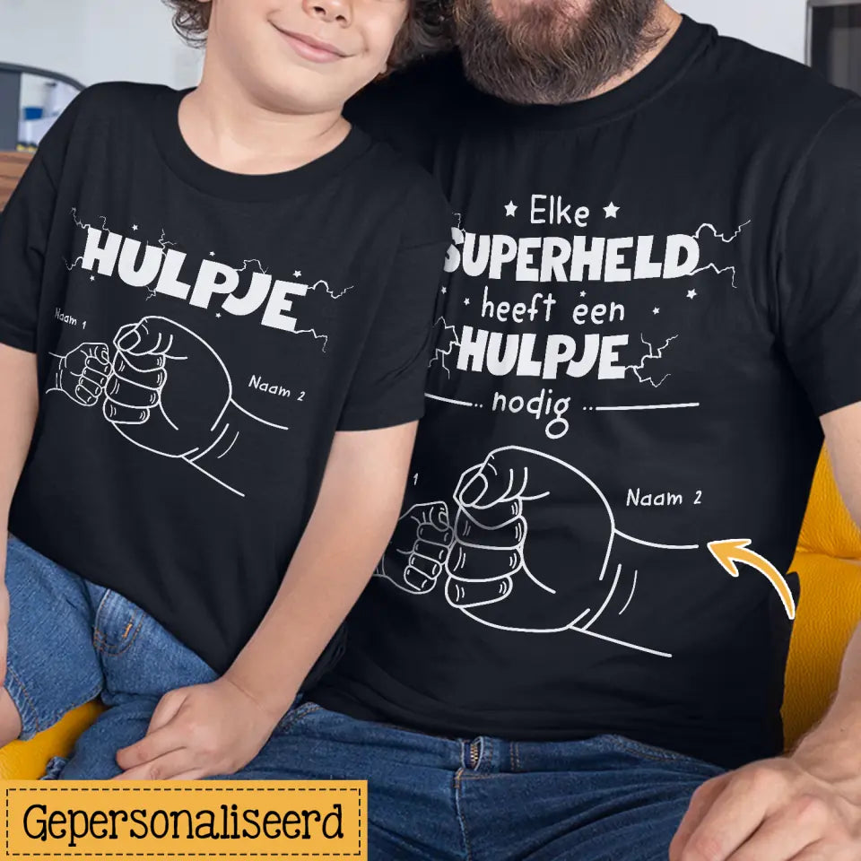 Gepersonaliseerd t shirt voor Nieuwe Papa | Gepersonaliseerd cadeau voor Nieuwe vader | Elke superheld heeft een hulpje nodig